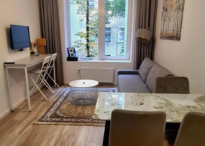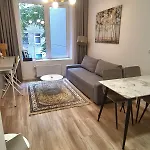 Lägenheten erbjuder ett komplett kök samt matplats för gästernas bekvämlighet. Boendet ligger cirka 5 minuter till fots från busshållplatsen Studentu skveras.